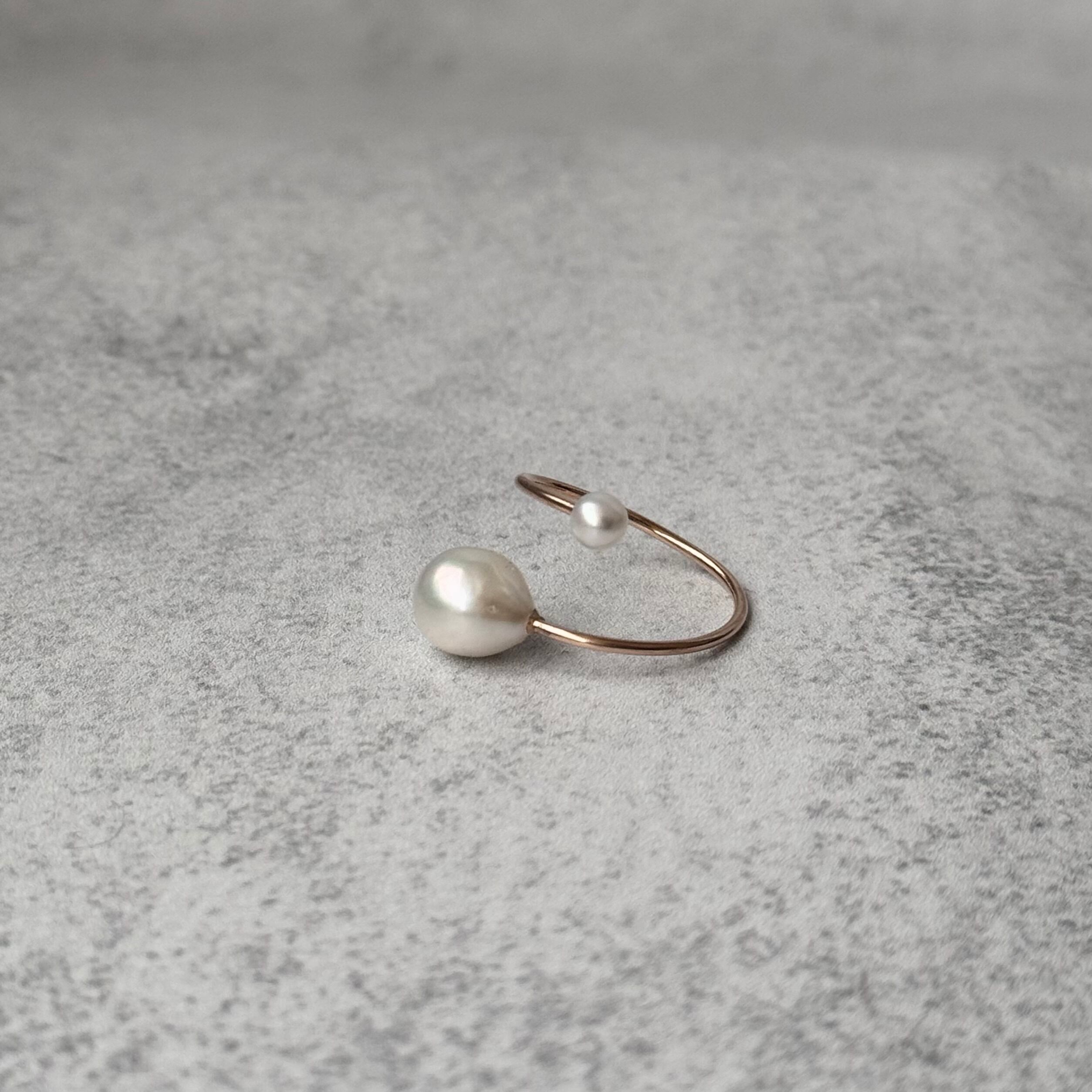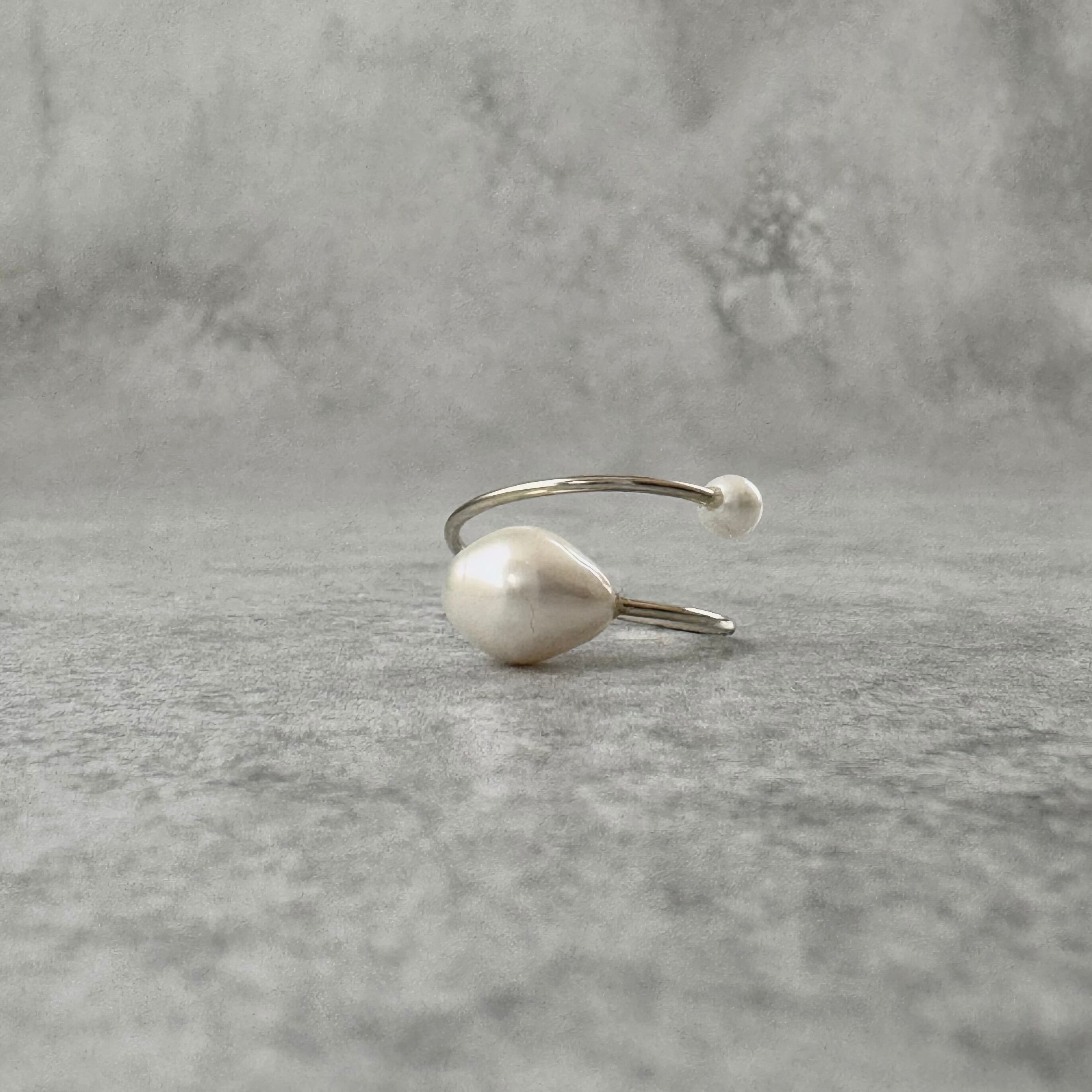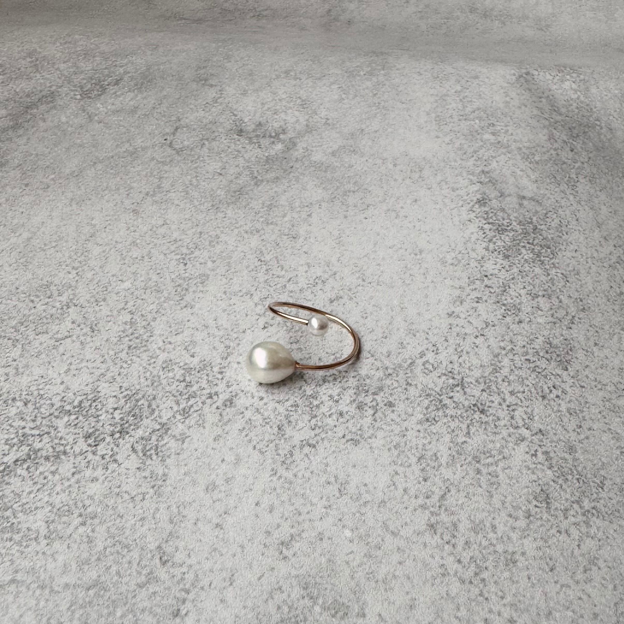 やわらかな艶をもつ淡水パールを主役にした、ミニマルなオープンリング。