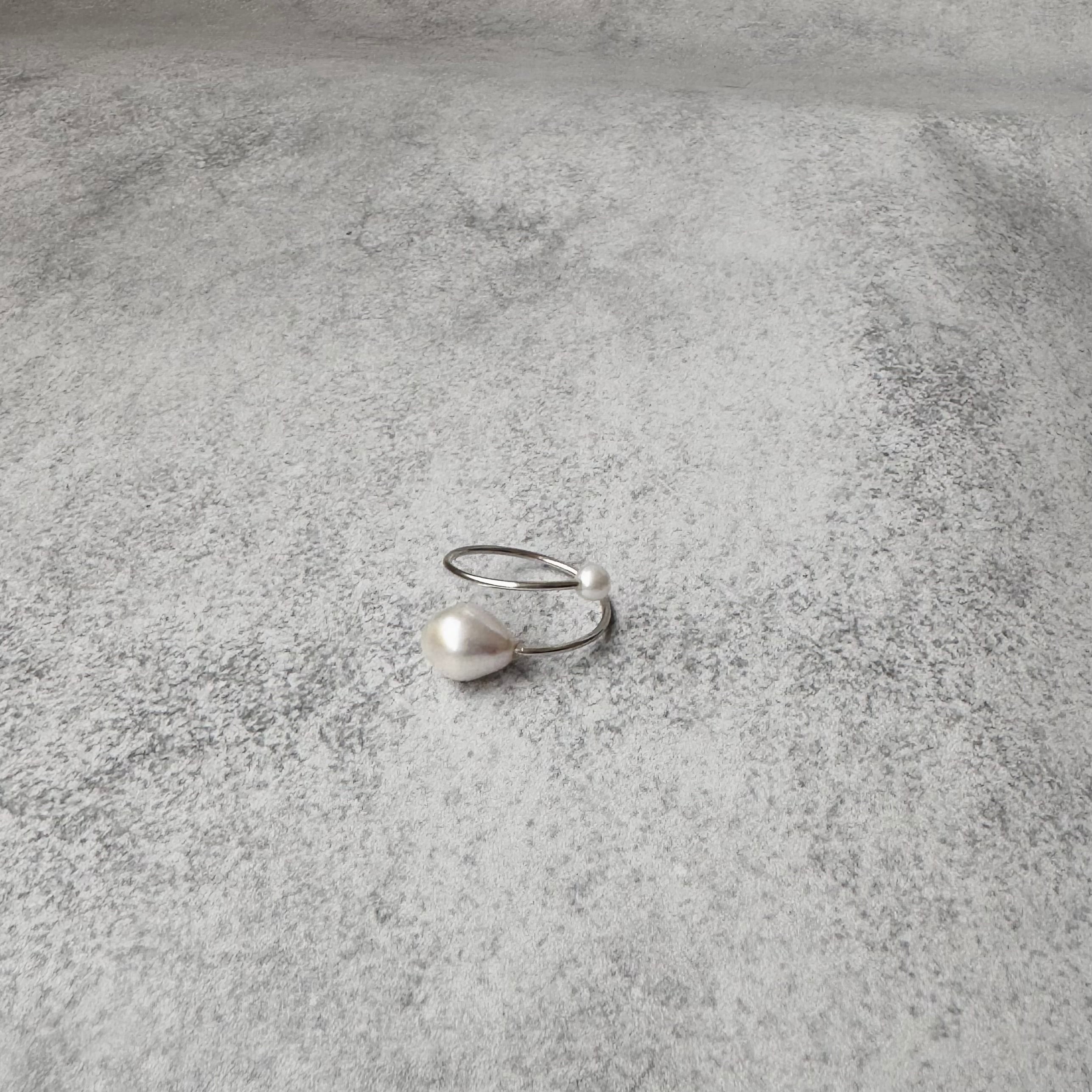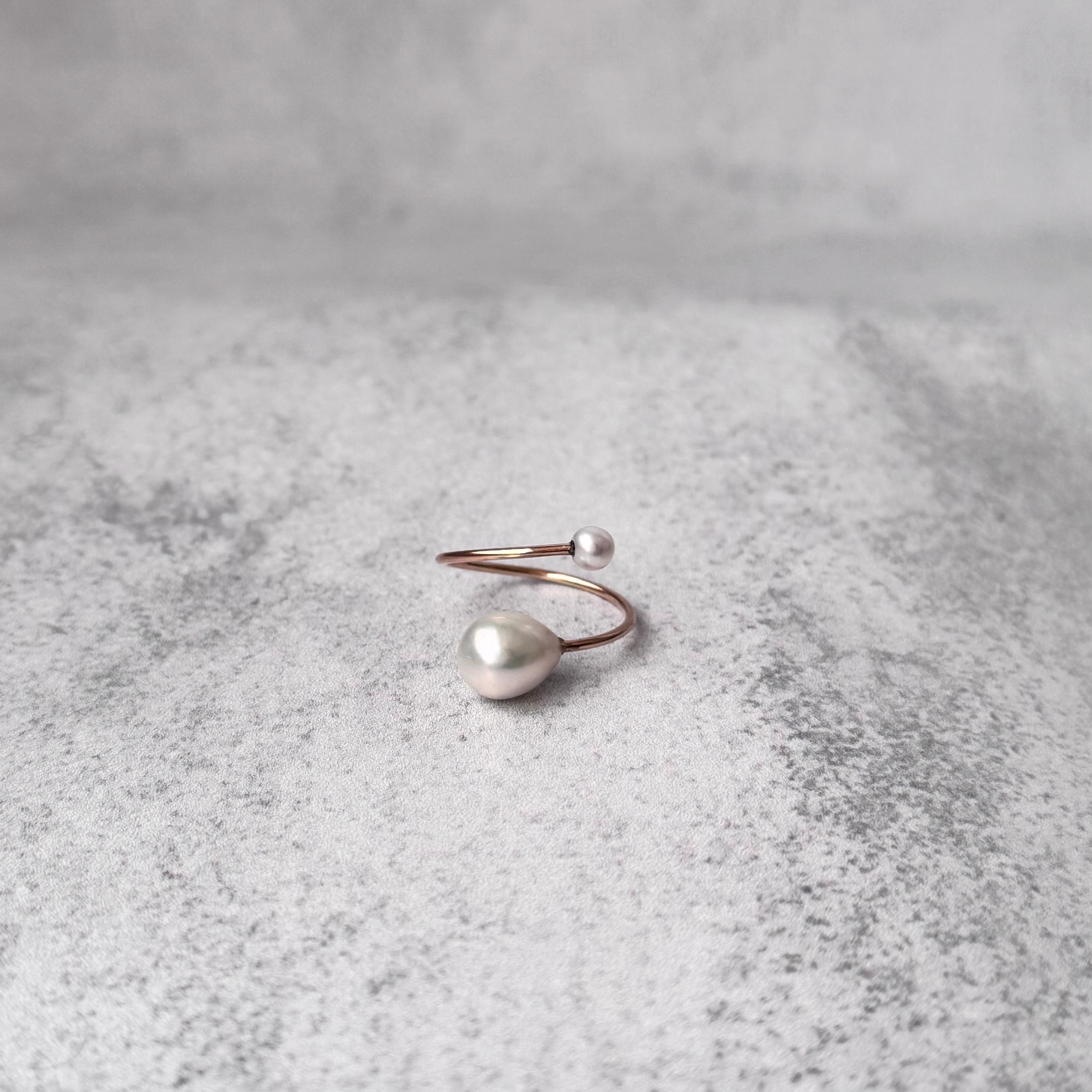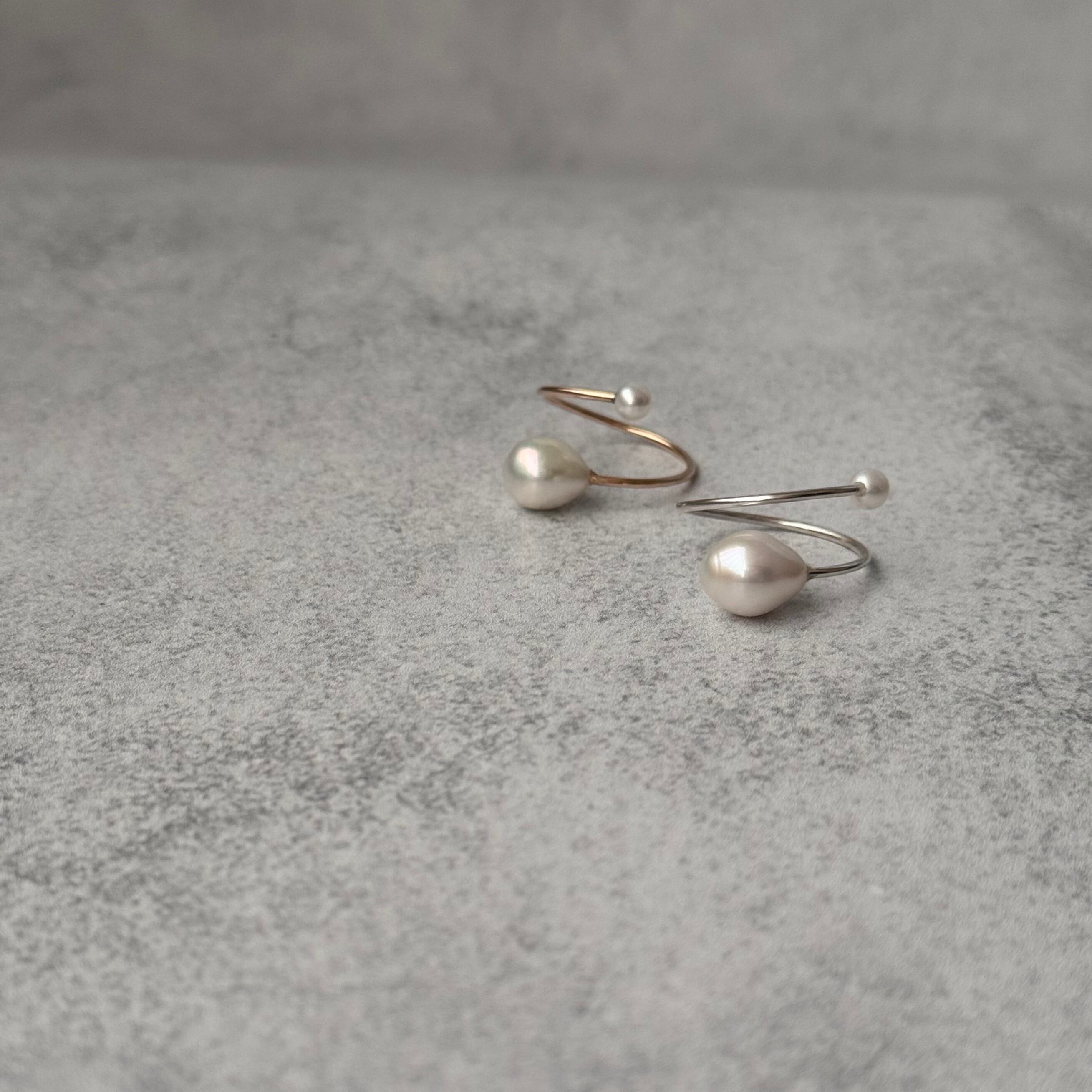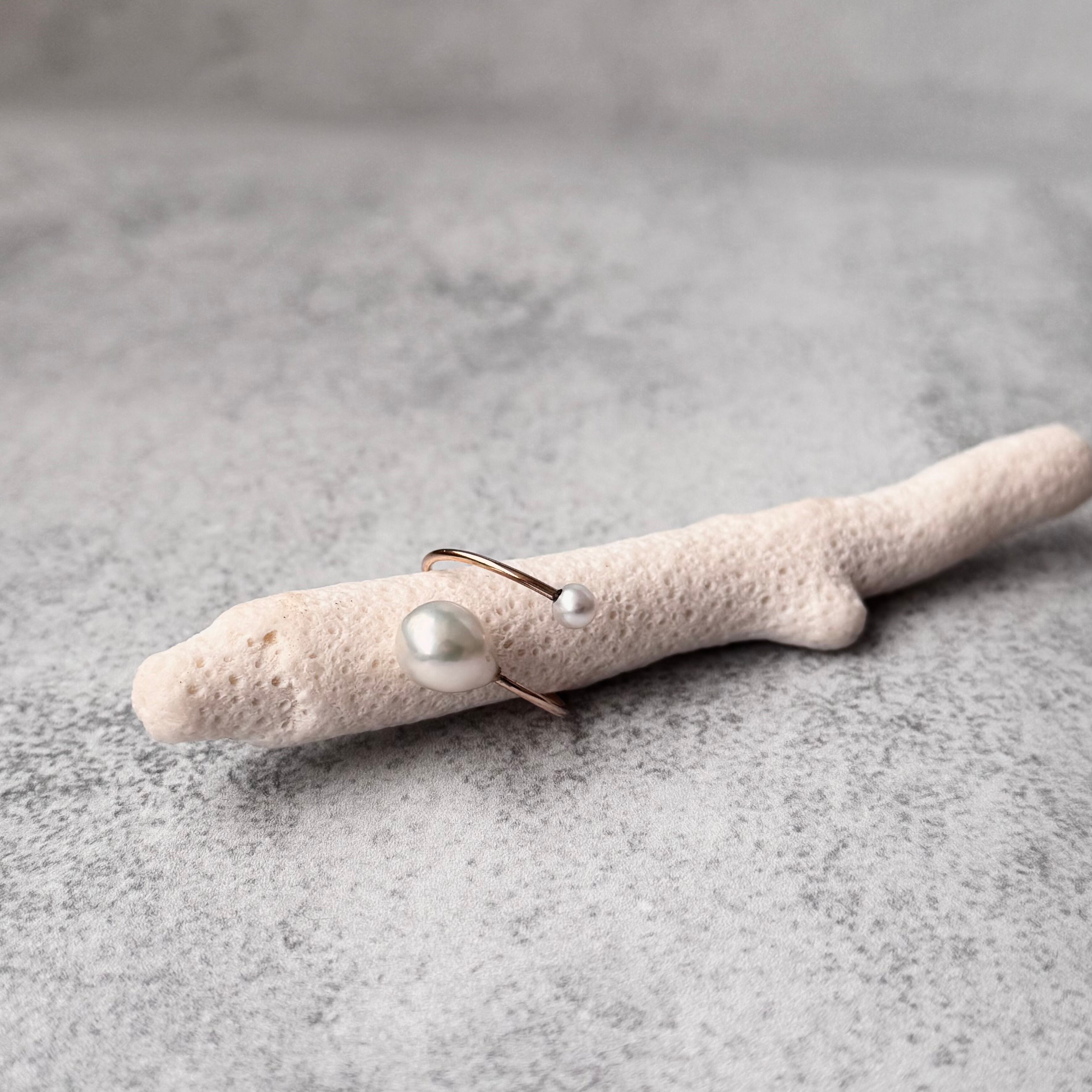 やわらかな艶をもつ淡水パールを主役にした、ミニマルなオープンリング。