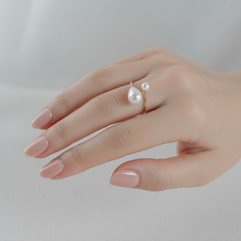 指元にすっとなじむ細身のラインと、パールの静かな輝きが、大人の装いに上品なアクセントを添えます。