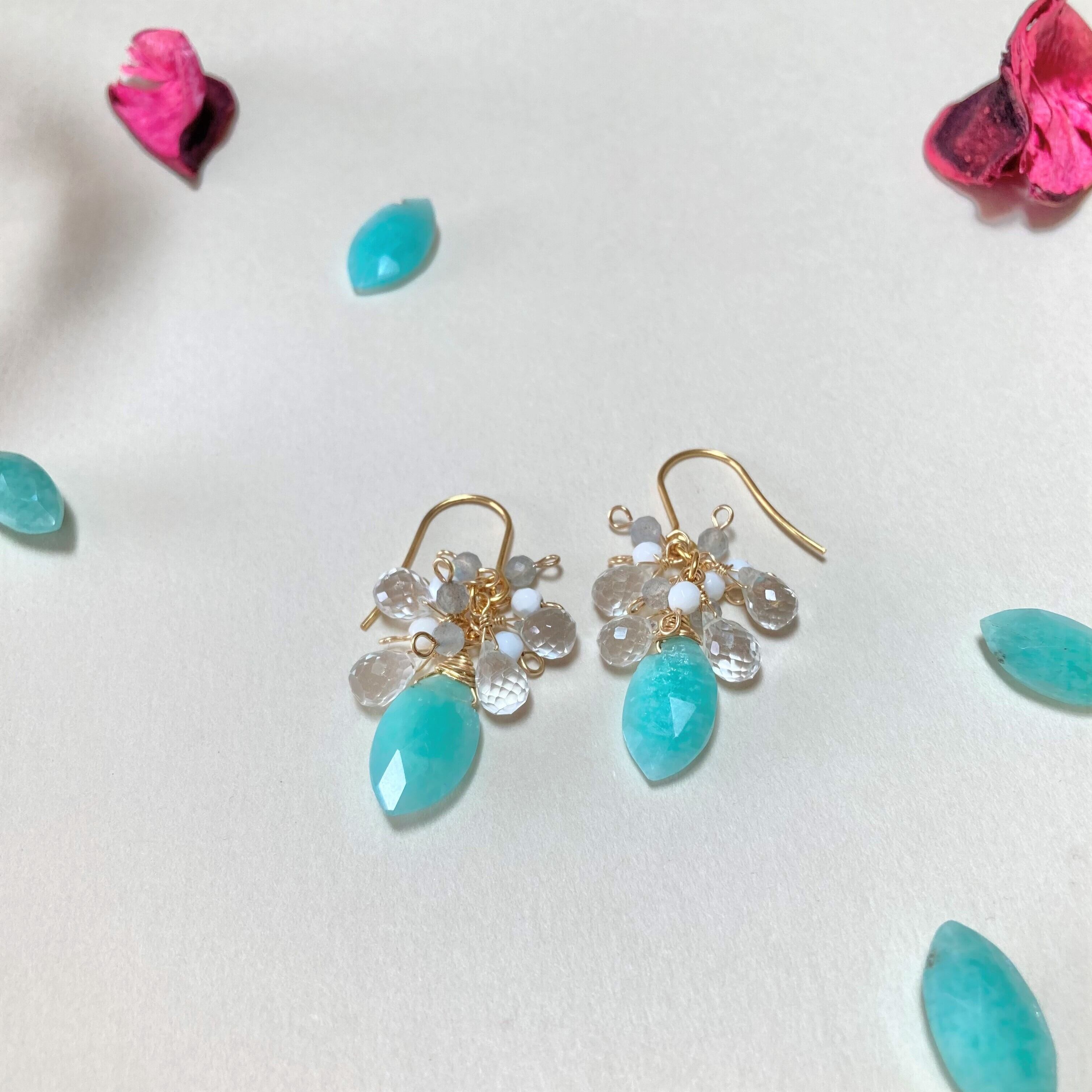 アマゾナイトマーキス ブリオレットカットのピアス ₍ᐢ⑅•ᴗ•⑅ᐢ₎