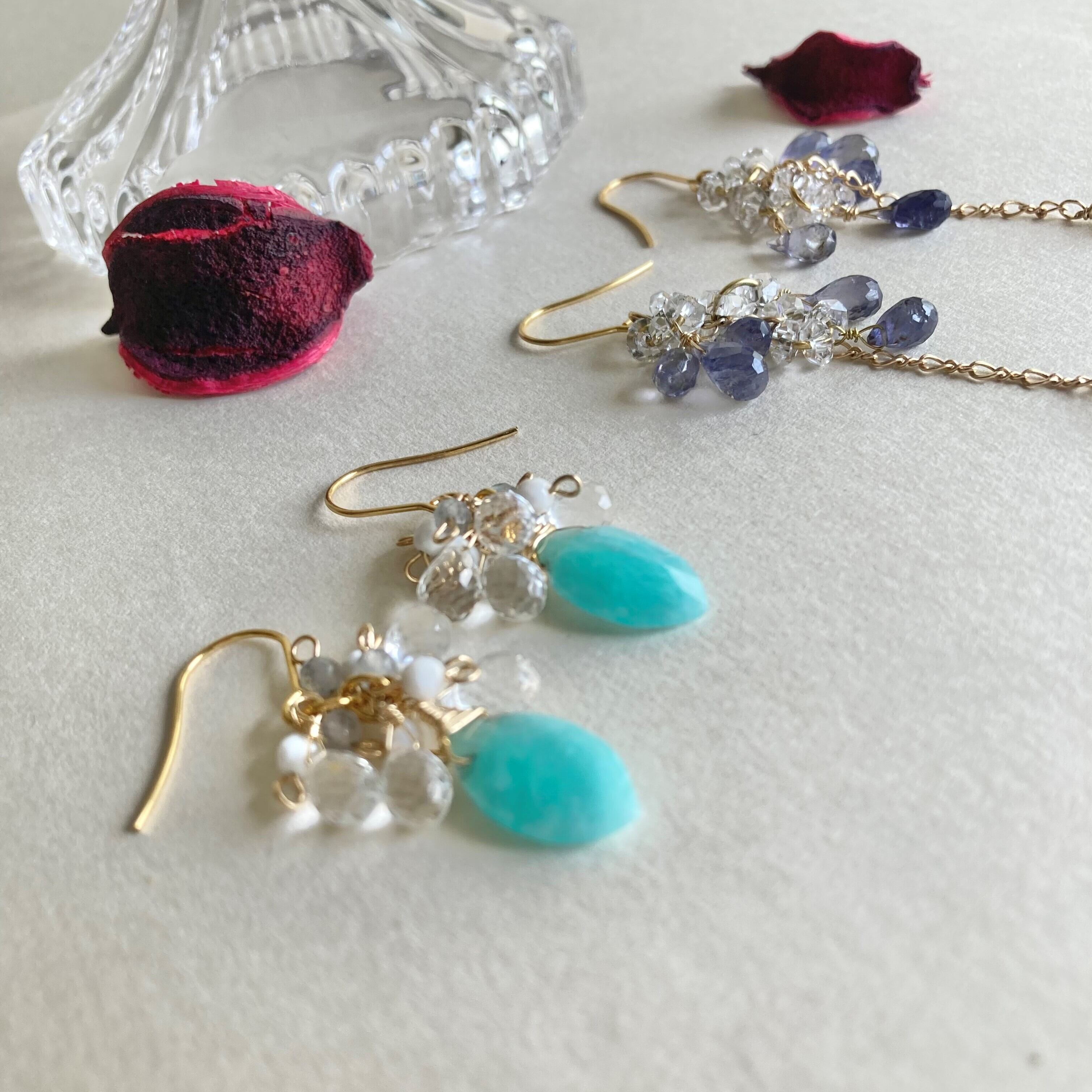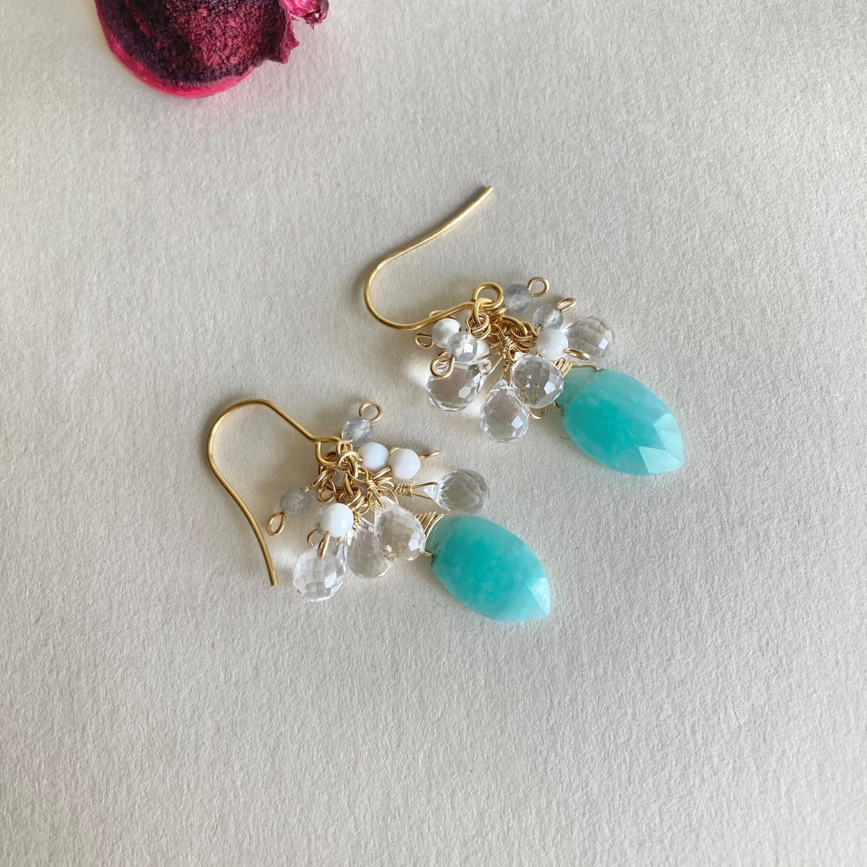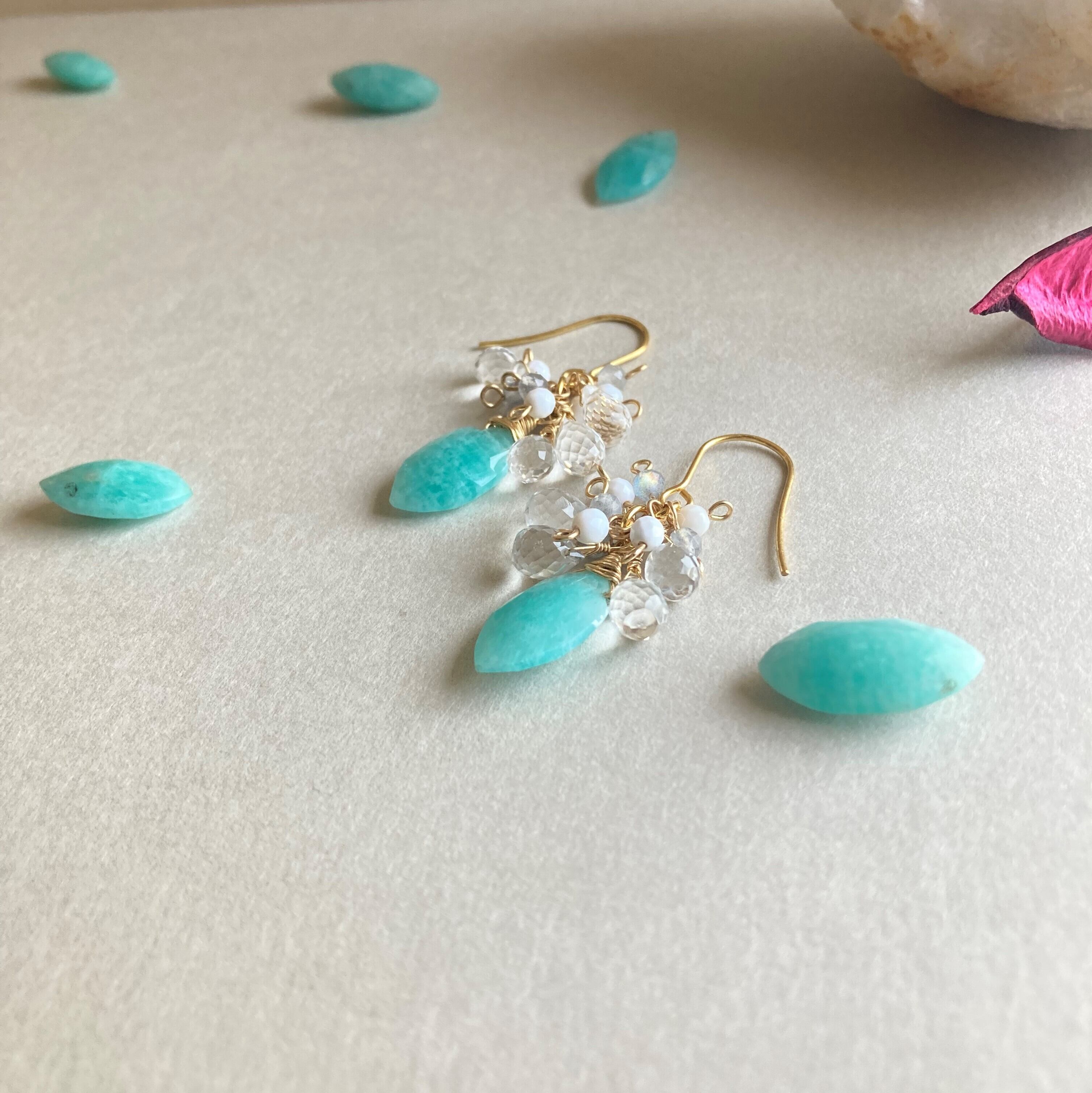 アマゾナイト マーキス ブリオレットカット 水晶 ドロップカット ピアス 大人上品アクセサリー 大人女性ピアス 大人上品イヤリング オフィスカジュアルアクセサリー