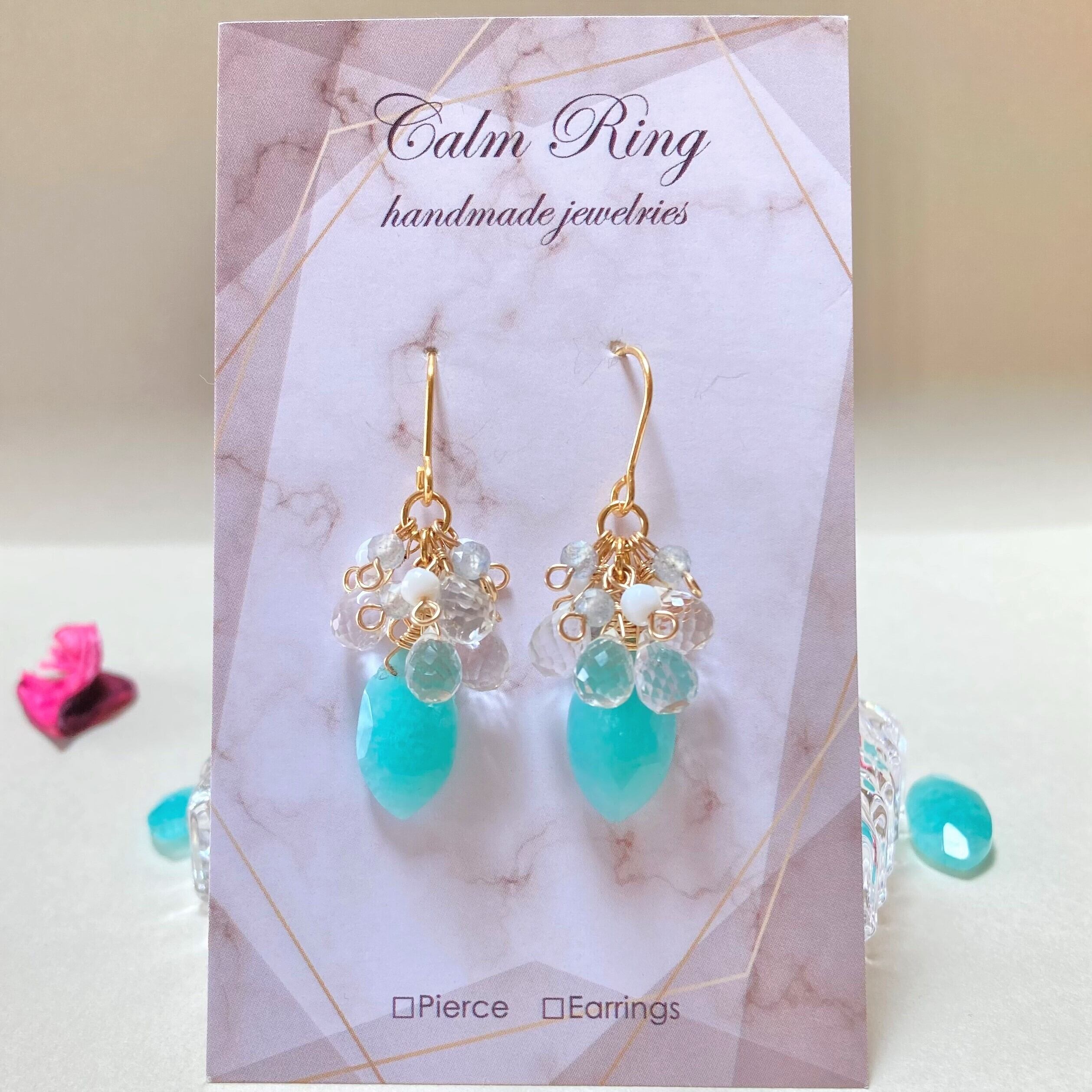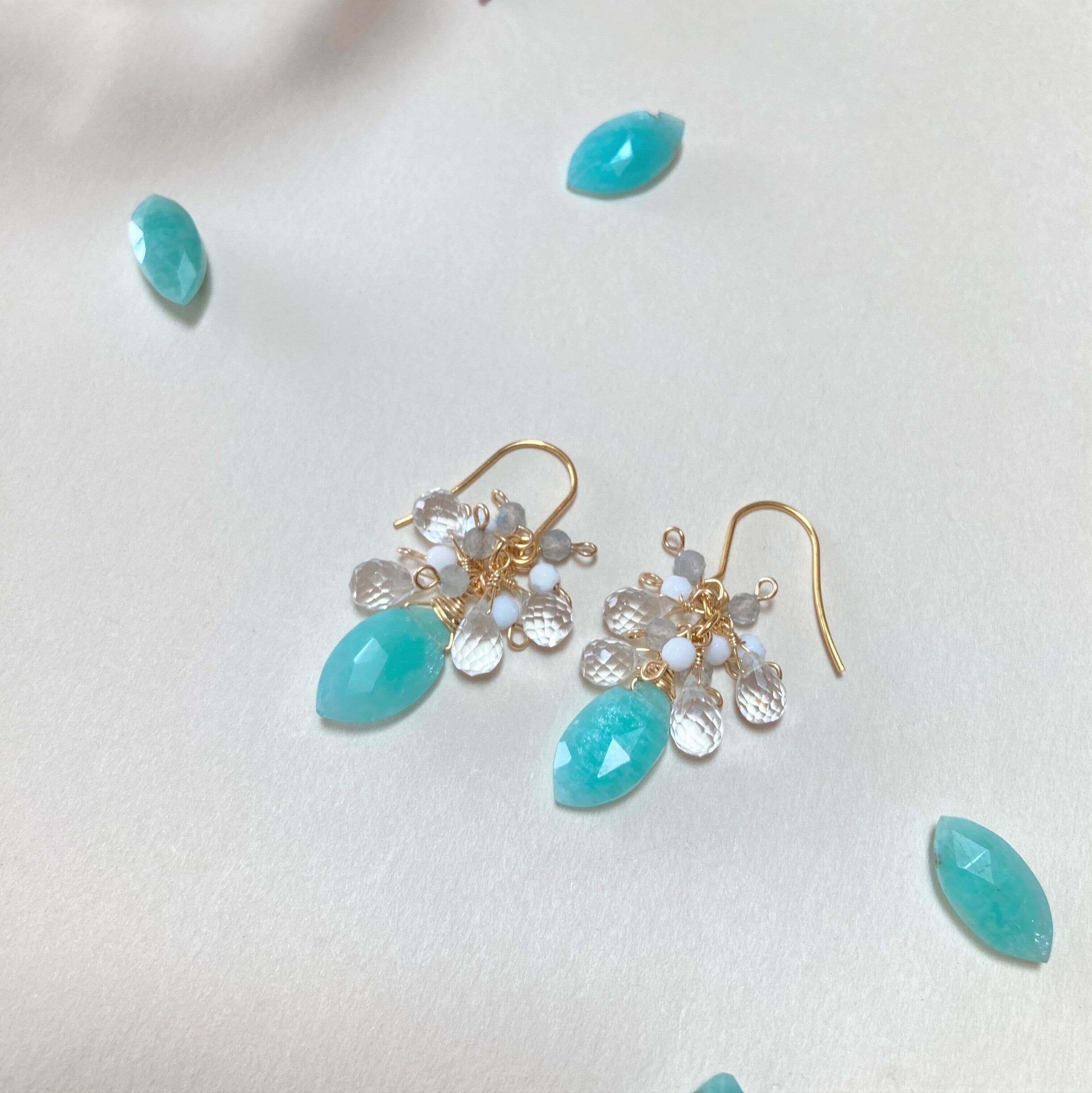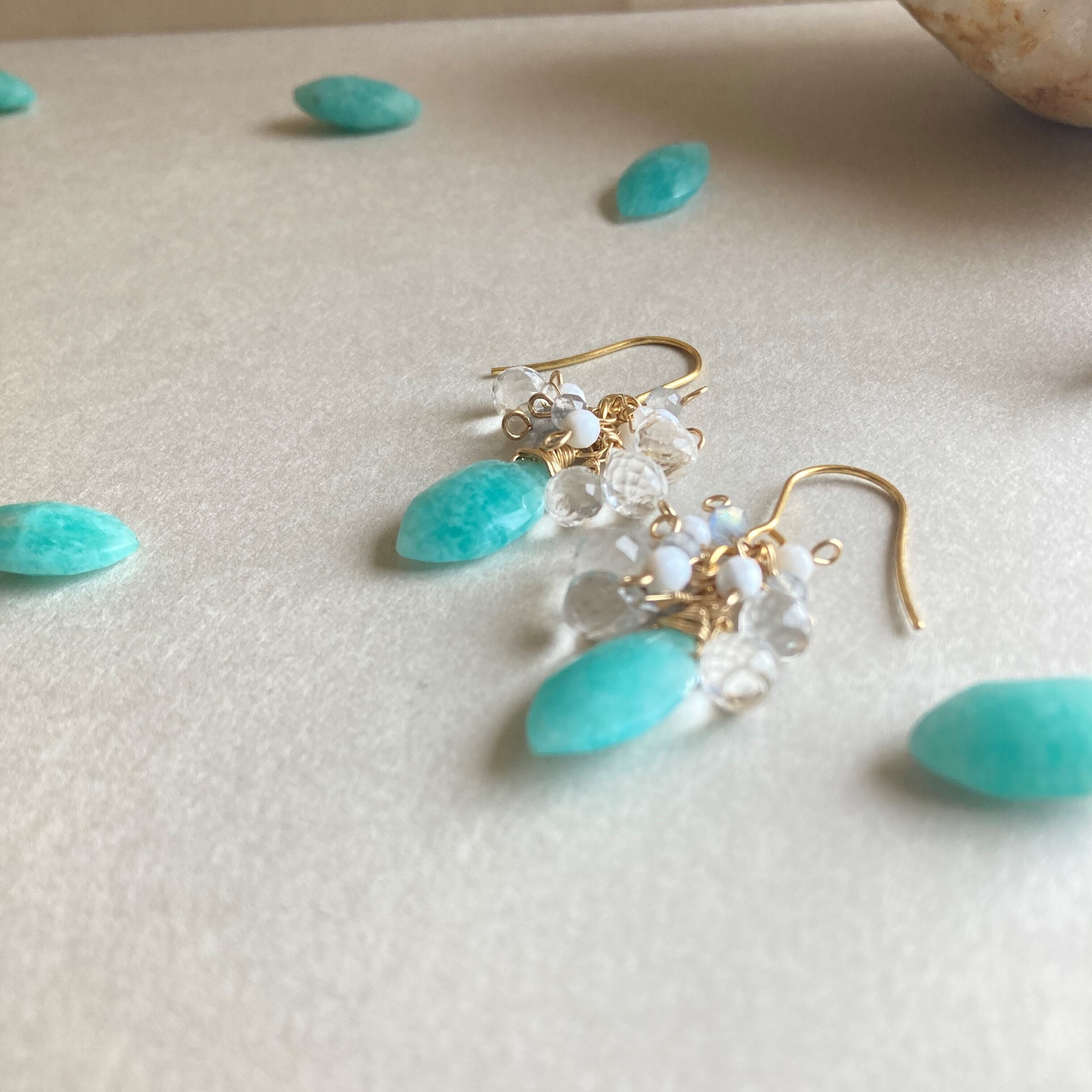 爽やか ブルーグリーン アマゾナイト マーキス ブリオレットカット ピアス