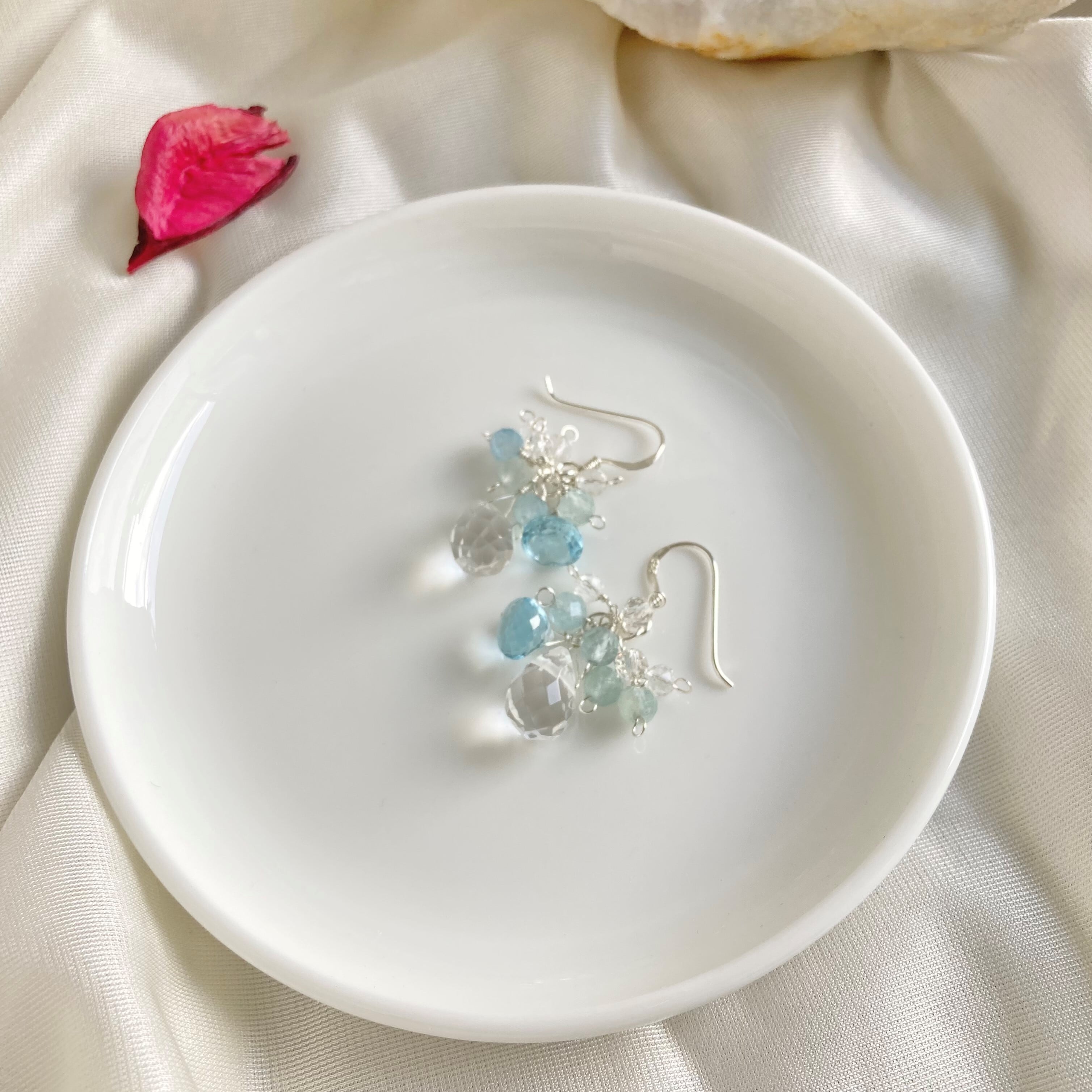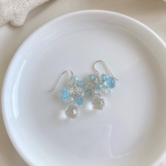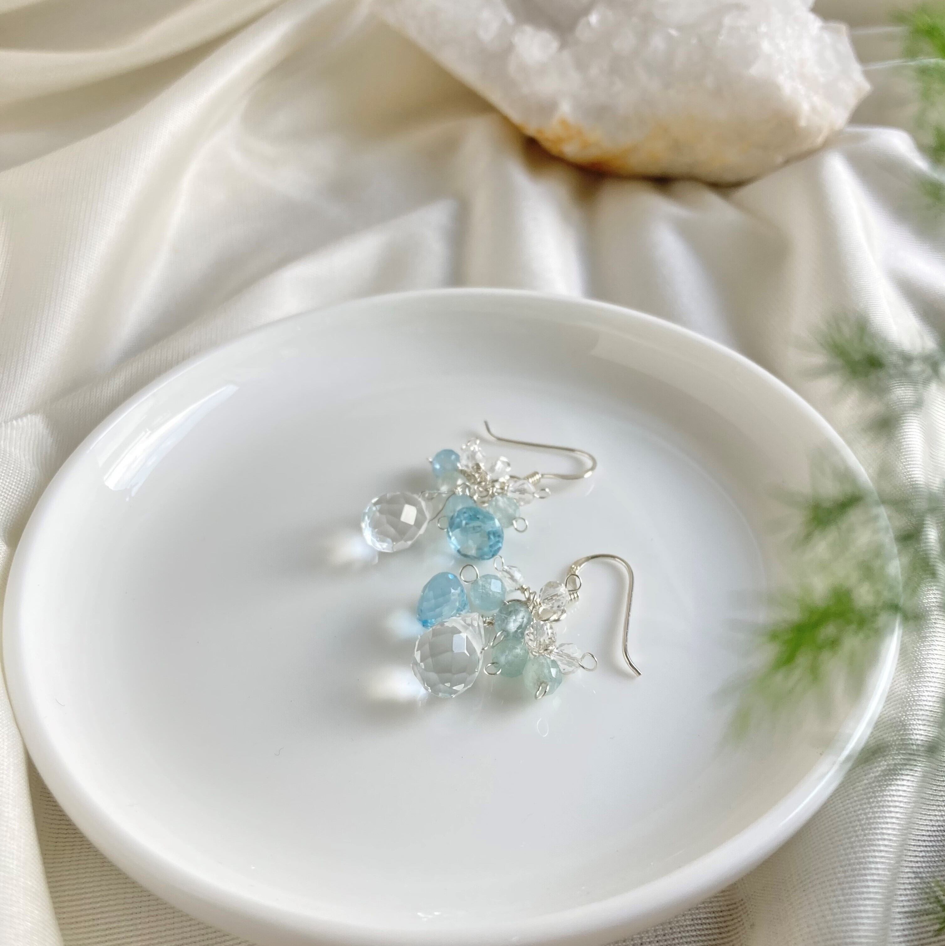 ☆ 涼しげ 爽やか 水晶 ブルートパーズ 天然石ピアス
