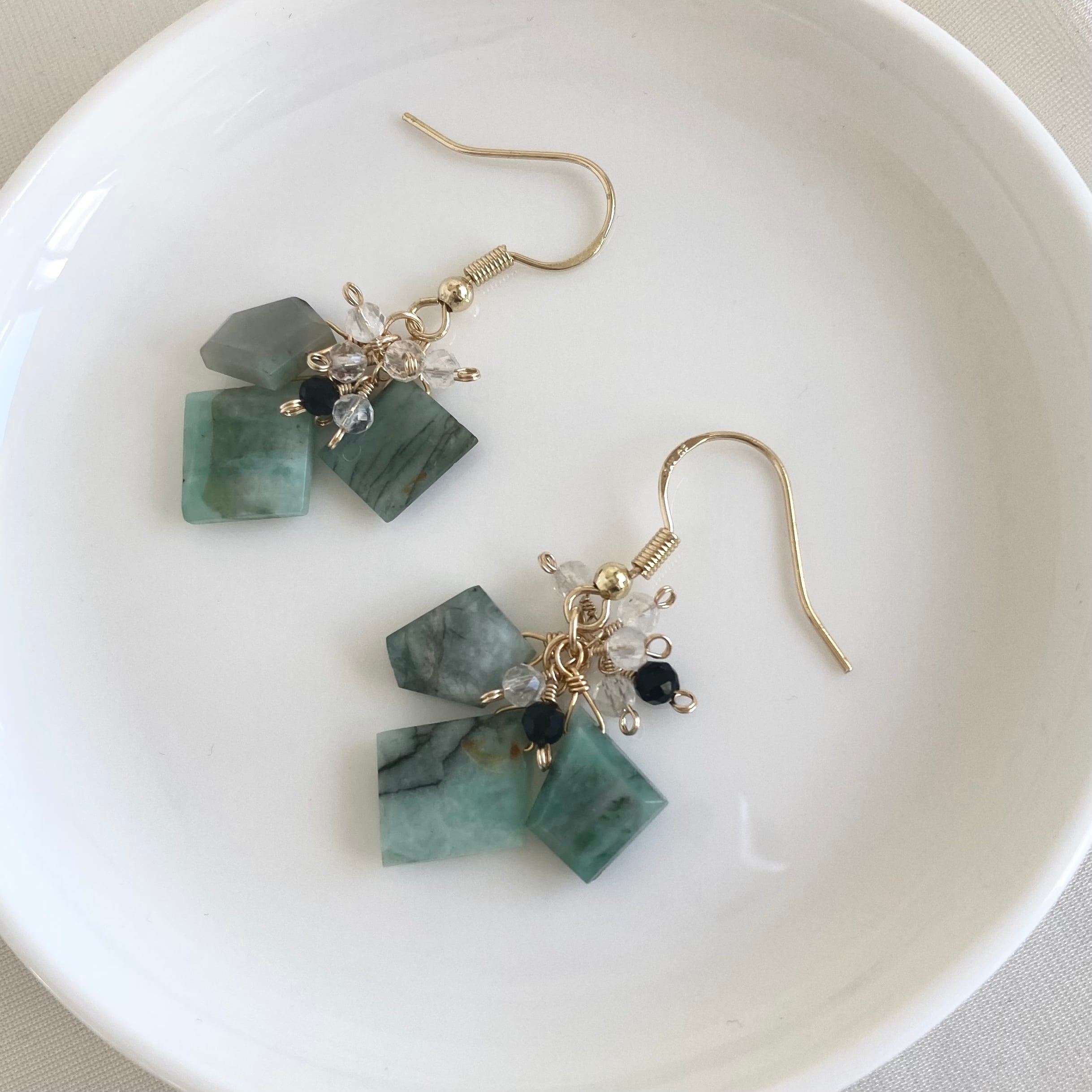 【新作】天然石 エメラルド ラフカット 14kgf ピアス