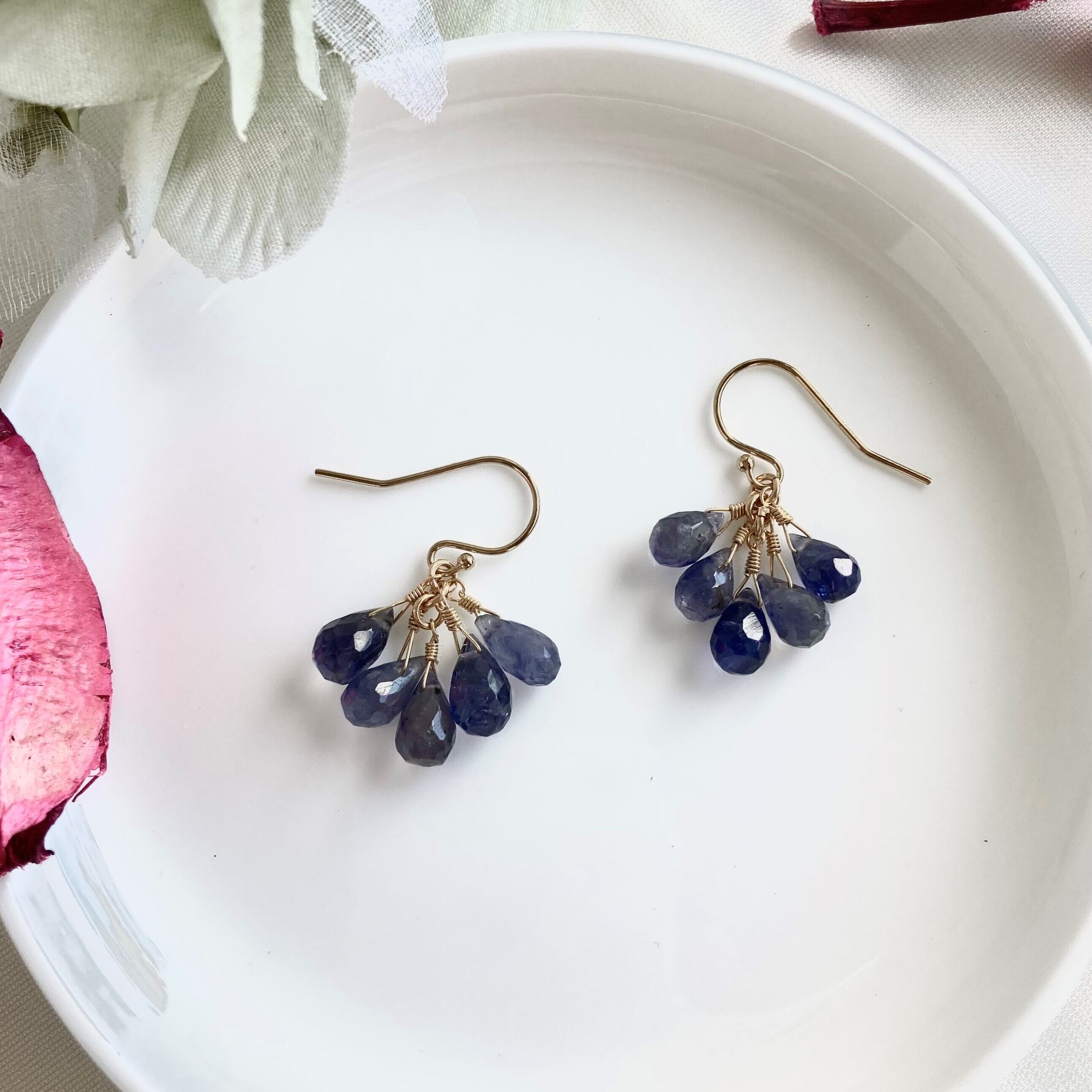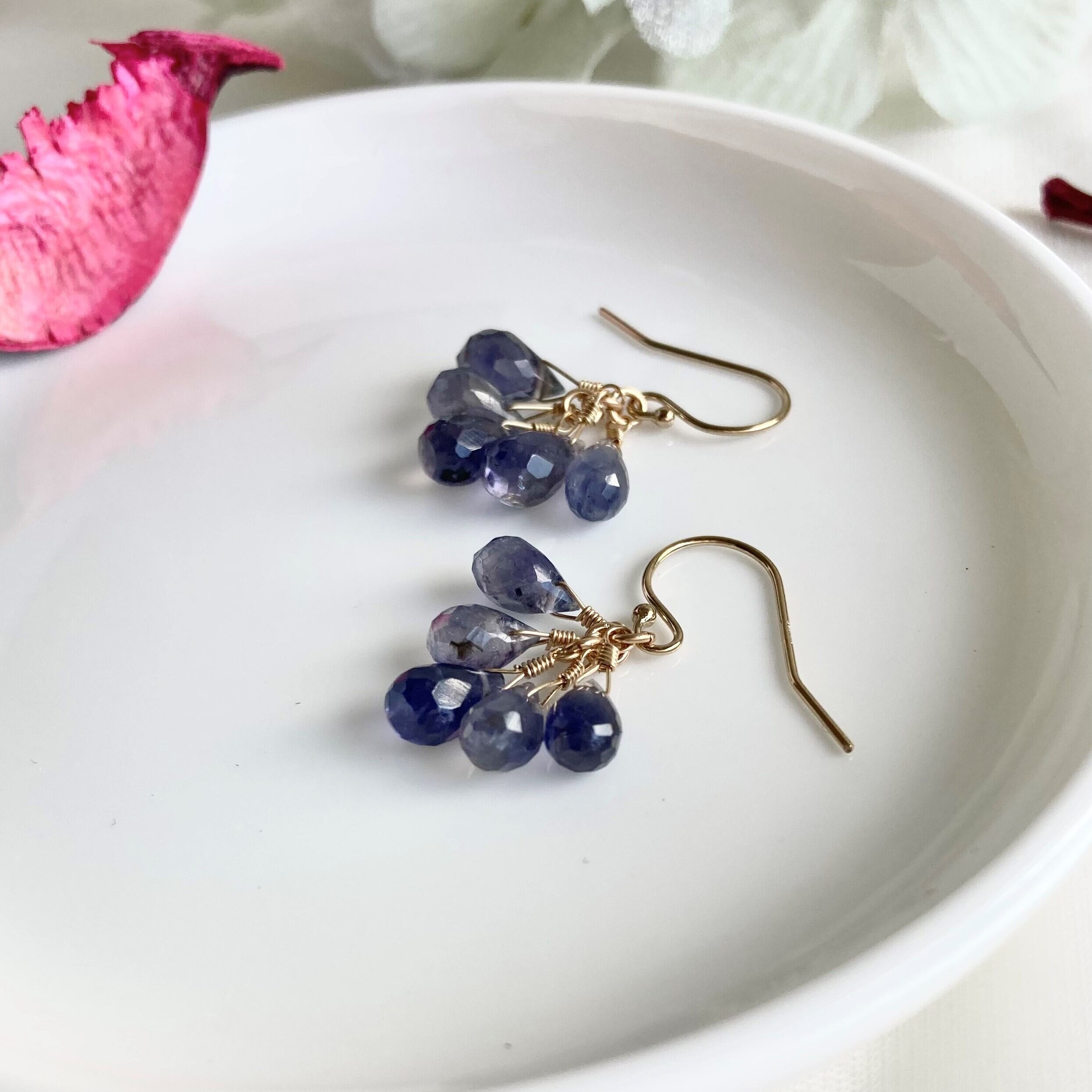 アイオライト すみれ色 房ピアス ドロップカット ブリオレットカット シンプル シンプルアクセサリー シンプルピアス 大人上品アクセサリー 金属アレルギー対応 20代 30代 40代 50代 普段使い オフィス 多用途 オフィスカジュアルアクセサリー