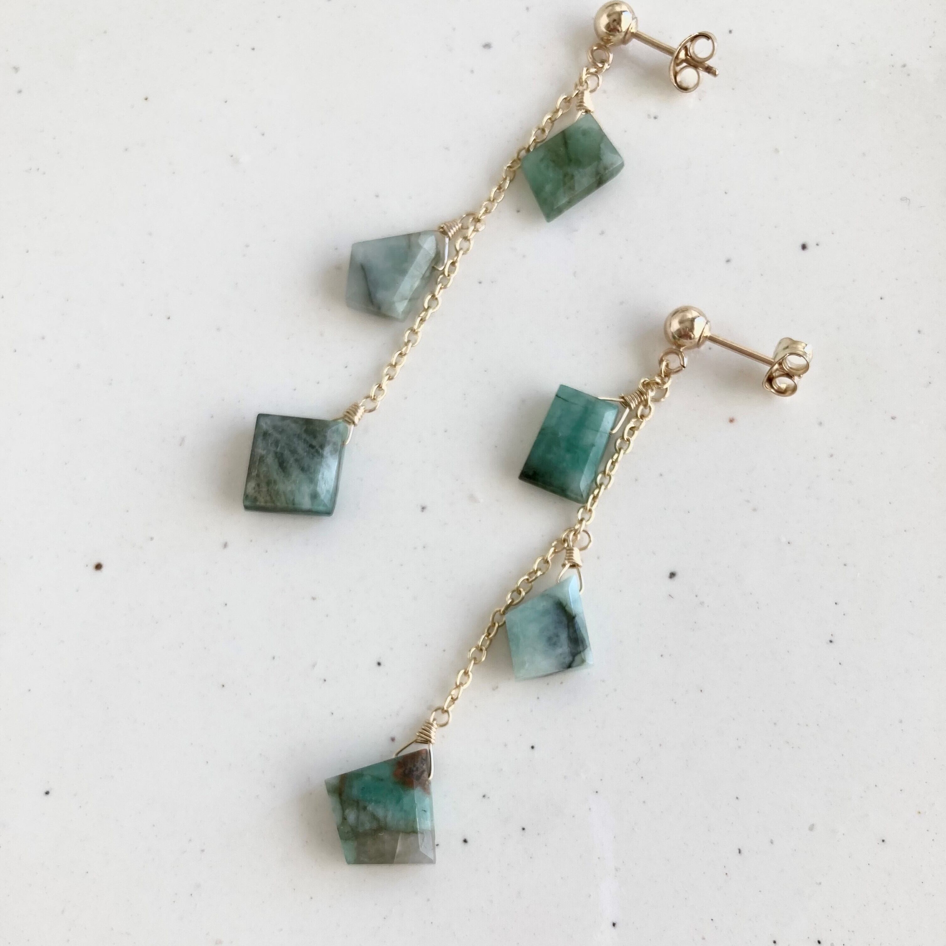 エメラルド ラフカット ゆらゆらチェーンピアス
