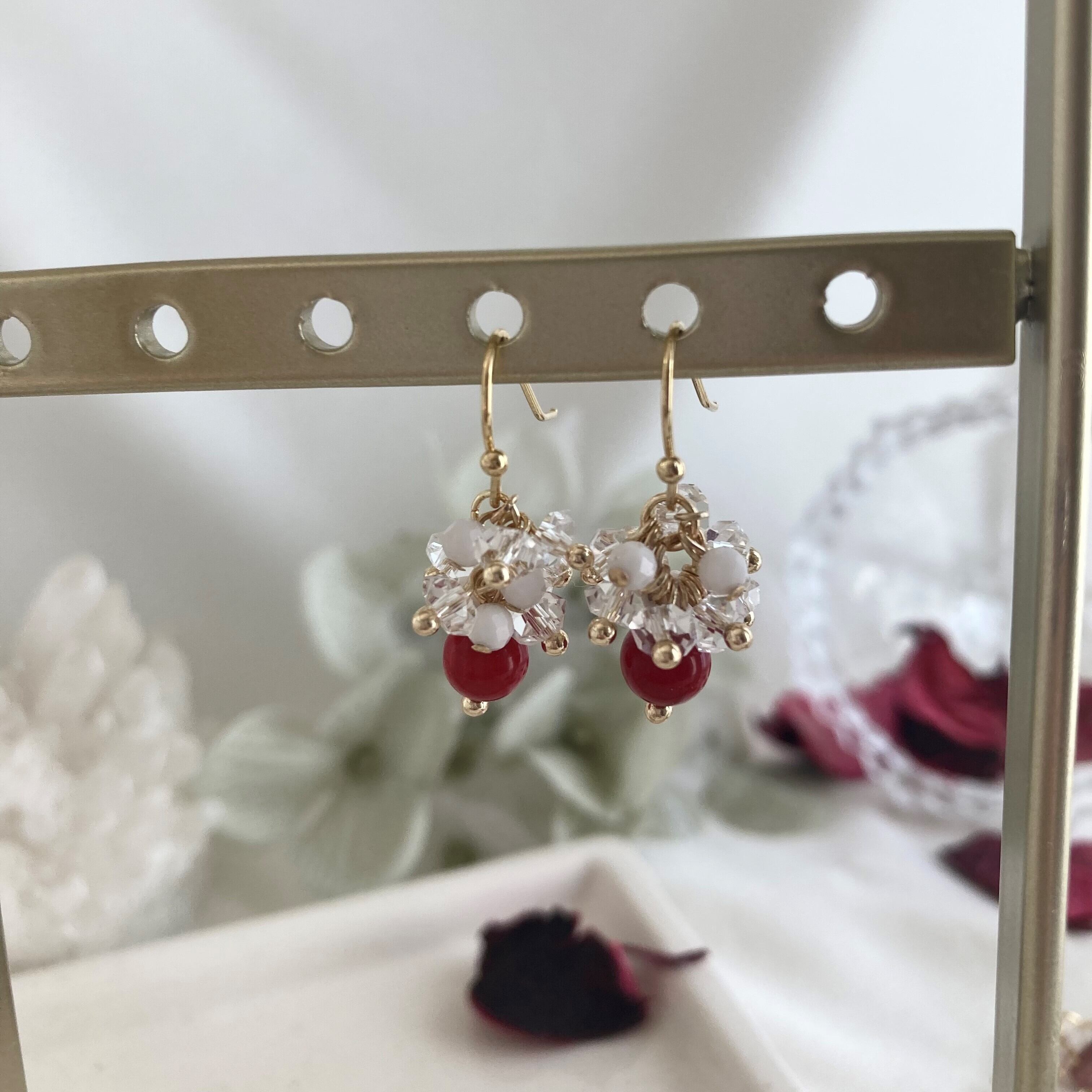 6mm玉の 真っ赤な珊瑚がアクセントのピアス
