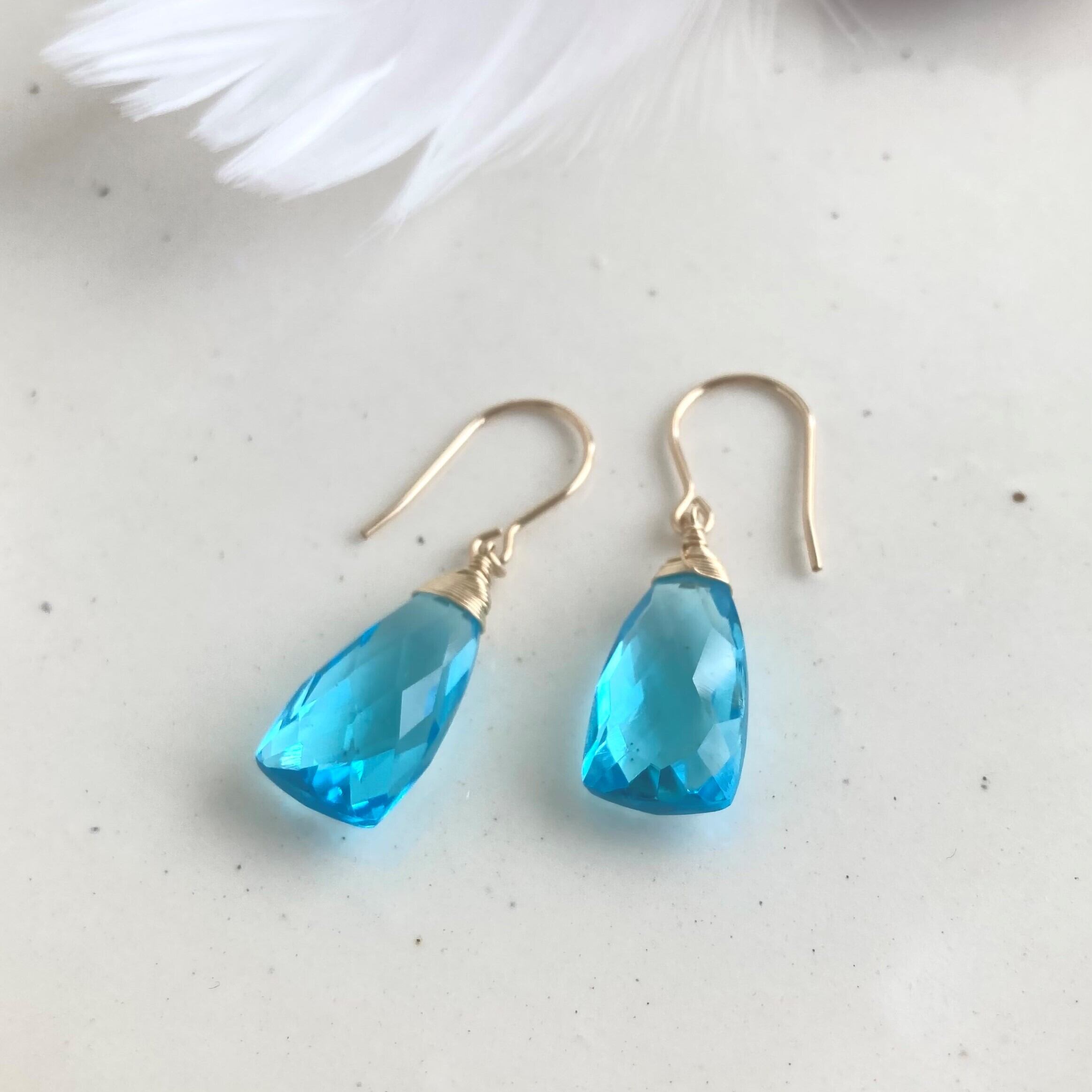 ブルートパーズ 天然石ピアス 大人上品アクセサリー 高品質 14kgf 爽やかピアス 天然石イヤリング